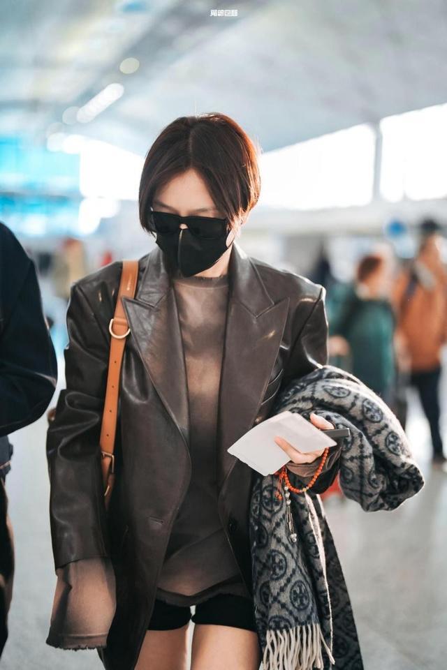 接着看秦岚这一身机场造型,她直接将 “飒爽” 二字刻进骨子里,黑色皮质西装搭配下衣失踪的穿法,再结合焦糖色挎包作为点睛之笔,酷飒和复古风交织,46岁的她再次用穿搭打破了年龄偏见,演绎出了独属于成熟女性的高级酷感。
